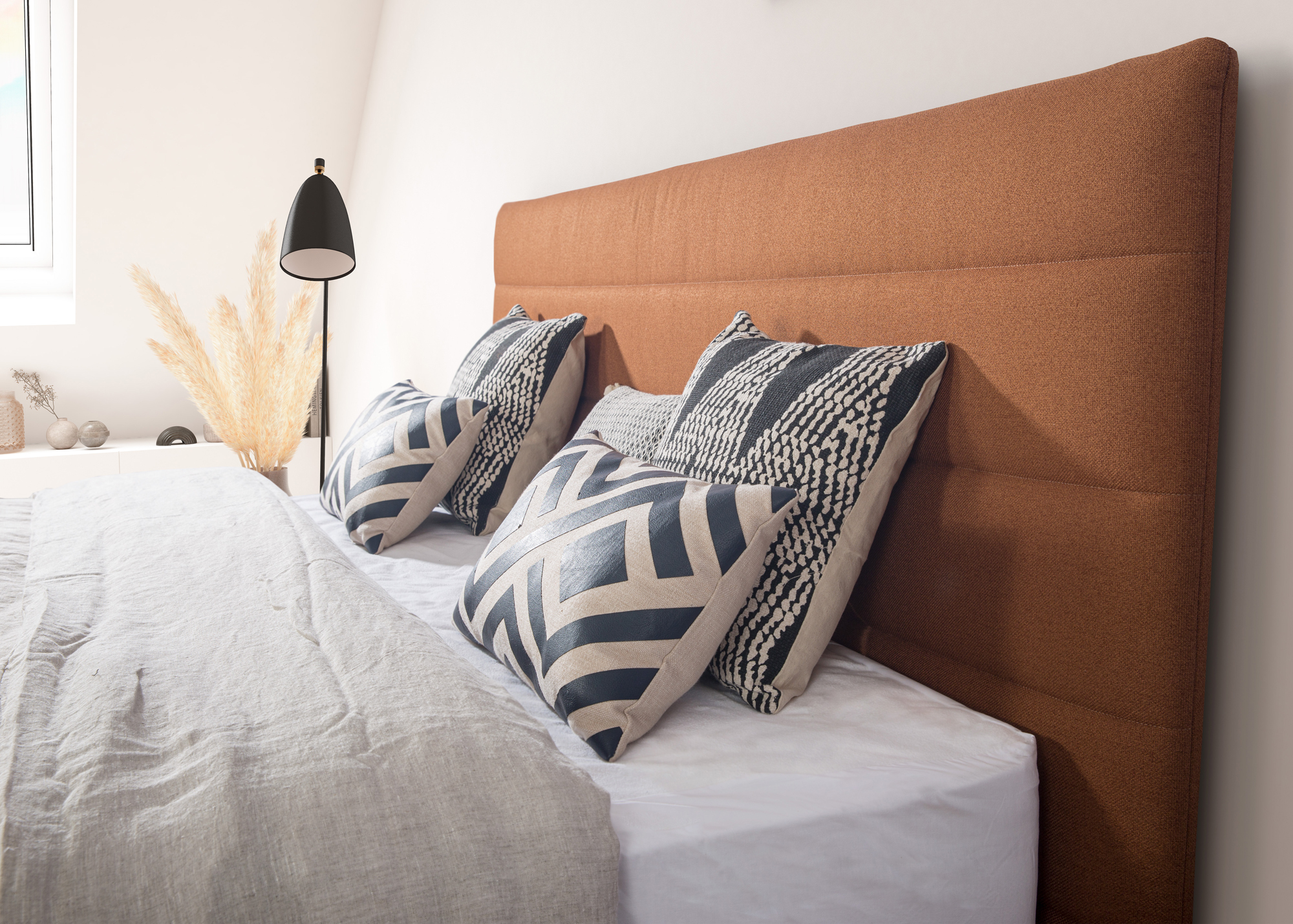 Laat je verrassen door de nieuwe hoofdborden, enkele zelfs 2-zijdig te gebruiken, zodat je kunt kiezen uit twee unieke uitvoeringen. Ontdek bijvoorbeeld het veelzijdige Barcelona hoofdbord met horizontale of verticale banen, zwevend of op de grond te plaatsen.