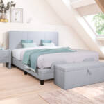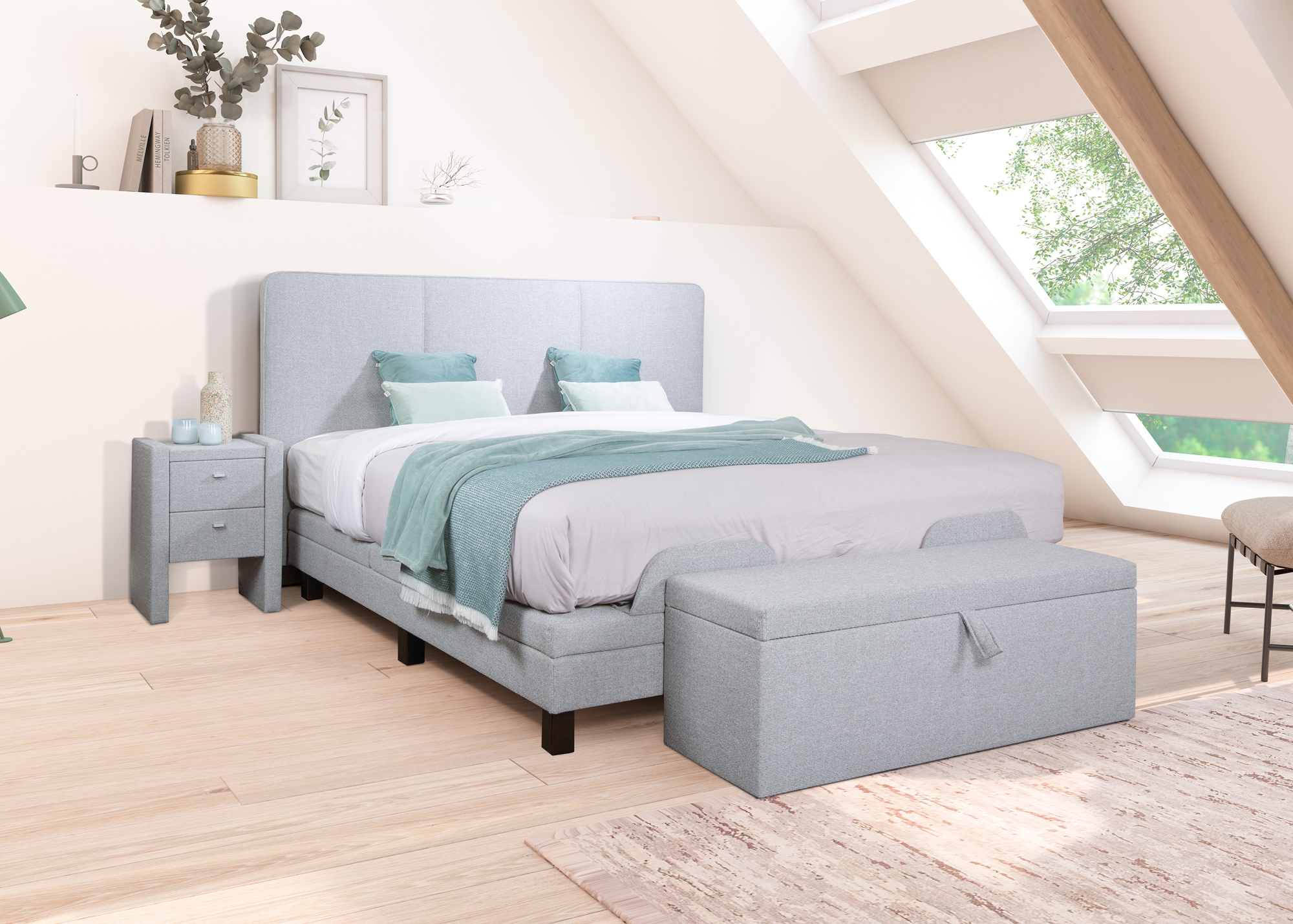 Kies uit diverse afmetingen, variërend van 90 tot 200 cm breed en 200 tot 220 cm lang, met verschillende diktematen. Personaliseer met een ruime selectie pootjes, stofsoorten en kleuren om aan uw voorkeuren te voldoen.