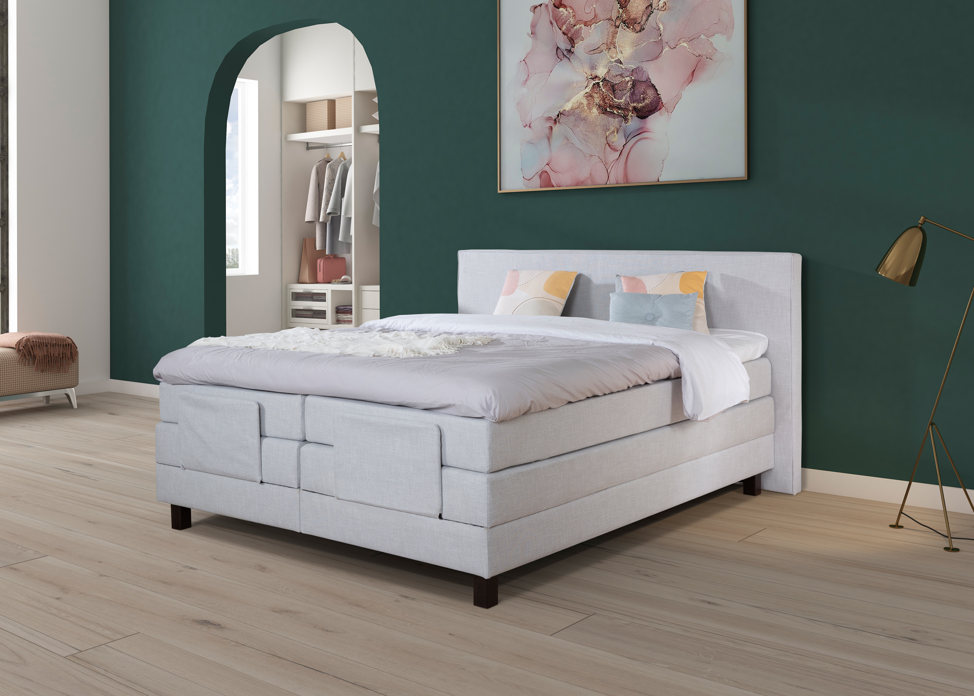 Personaliseer uw boxspring met 9 verschillende hoofdborden, diverse onderboxen met Bonellveren of Pocketveren en een vlakke of elektrisch verstelbare uitvoering. Voor extra comfort zijn er meerdere topper-opties, afgestemd op uw slaapvoorkeur. Maak de set compleet met een keuze uit stijlvolle houten of metalen pootjes.
