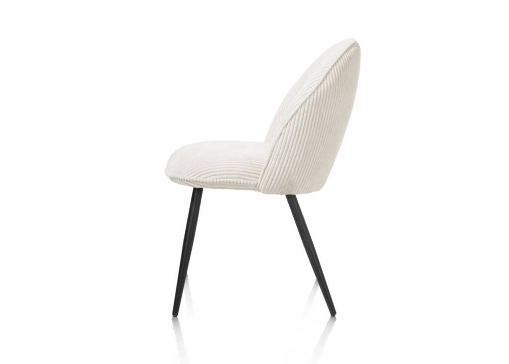 Organische vormen zijn momenteel helemaal in de mode, en de trendy eetkamerstoel Arielle uit de Happy@Home collectie is daar het perfecte voorbeeld van. De afgeronde rugleuning geeft deze eetkamerstoel een elegante en slanke uitstraling. De vier metalen poten, uitgevoerd in rough off-black, ondersteunen de stoel en zorgen voor een stevige basis. Met een zithoogte van 50 cm is deze stoel perfect voor elke eettafel. De Arielle eetkamerstoel is bekleed met de ribstof Rivas en is beschikbaar in drie stijlvolle kleuren: charcoal, crème en lichtblauw. De afgebeelde versie is uitgevoerd in de populaire kleur lichtblauw. Bezoek Happy@Home dealer Klinkenberg Wonen & Slapen om deze prachtige eetkamerstoel Arielle te bekijken en te ervaren.