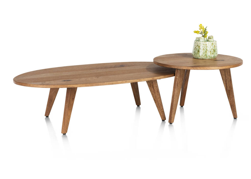 De Everest bijzettafel (50 cm, rond) en salontafel (120x60 cm, ovaal) van Happy@Home zijn de ideale keuze voor een stijlvol en praktisch interieur. Deze tafels maken deel uit van het uitgebreide Everest meubelprogramma en zijn ontworpen om perfect samen te passen in elke woonkamer. Met hun hoogwaardige smoked Mangifera fineer afwerking hebben beide tafels een warme, natuurlijke uitstraling die harmonieus combineert met zowel moderne als klassieke interieurs. De bijzettafel Everest is perfect voor een handig extra oppervlak, terwijl de salontafel een centrale blikvanger is in uw zithoek. Bezoek Klinkenberg Wonen & Slapen, uw officiële Happy@Home-dealer, en ontdek deze prachtige tafels in onze showroom. Creëer een sfeervolle en stijlvolle woonkamer met de Everest bijzettafel en salontafel!