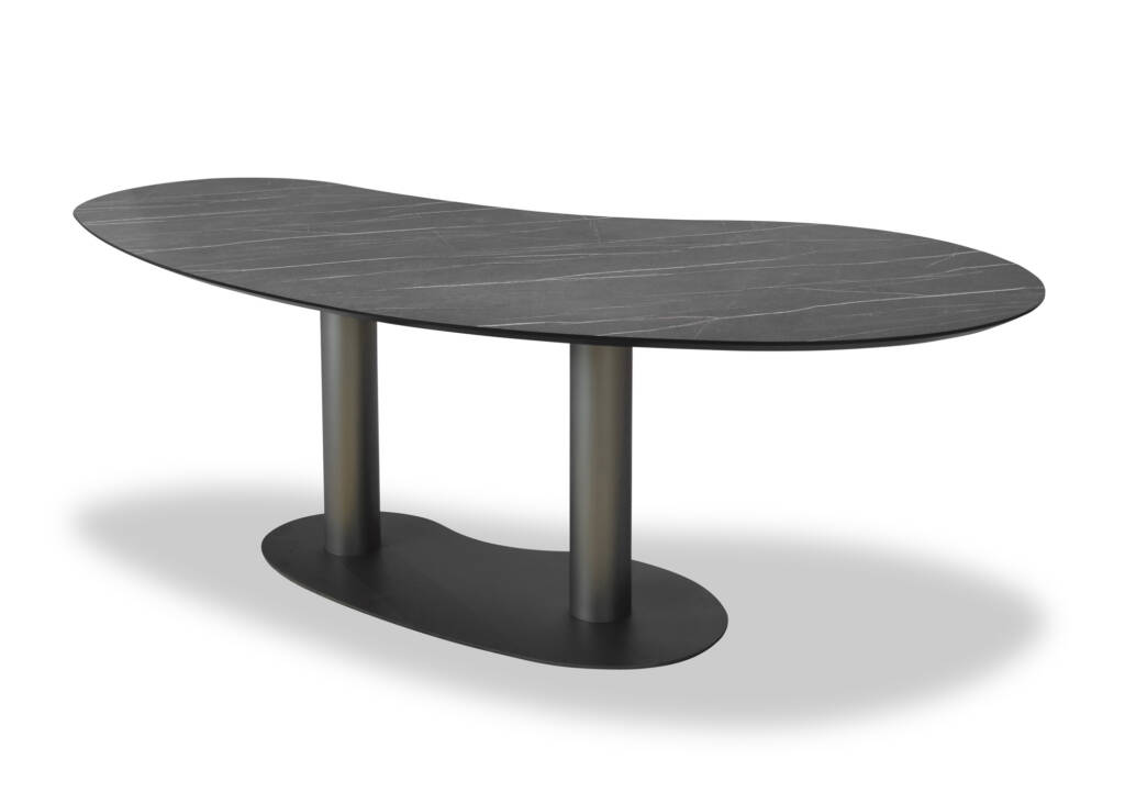 Het tafelblad is vervaardigd uit hoogwaardig HPL (High Pressure Laminate): krasvast, vlekbestendig en makkelijk te onderhouden. Perfect voor dagelijks gebruik in een levendig huishouden of bij sfeervolle diners. Het organische bladmodel kenmerkt zich door zijn natuurlijke, zachte lijnen zonder strakke symmetrie. Deze vorm brengt rust, beweging en een warme uitstraling in elke ruimte.