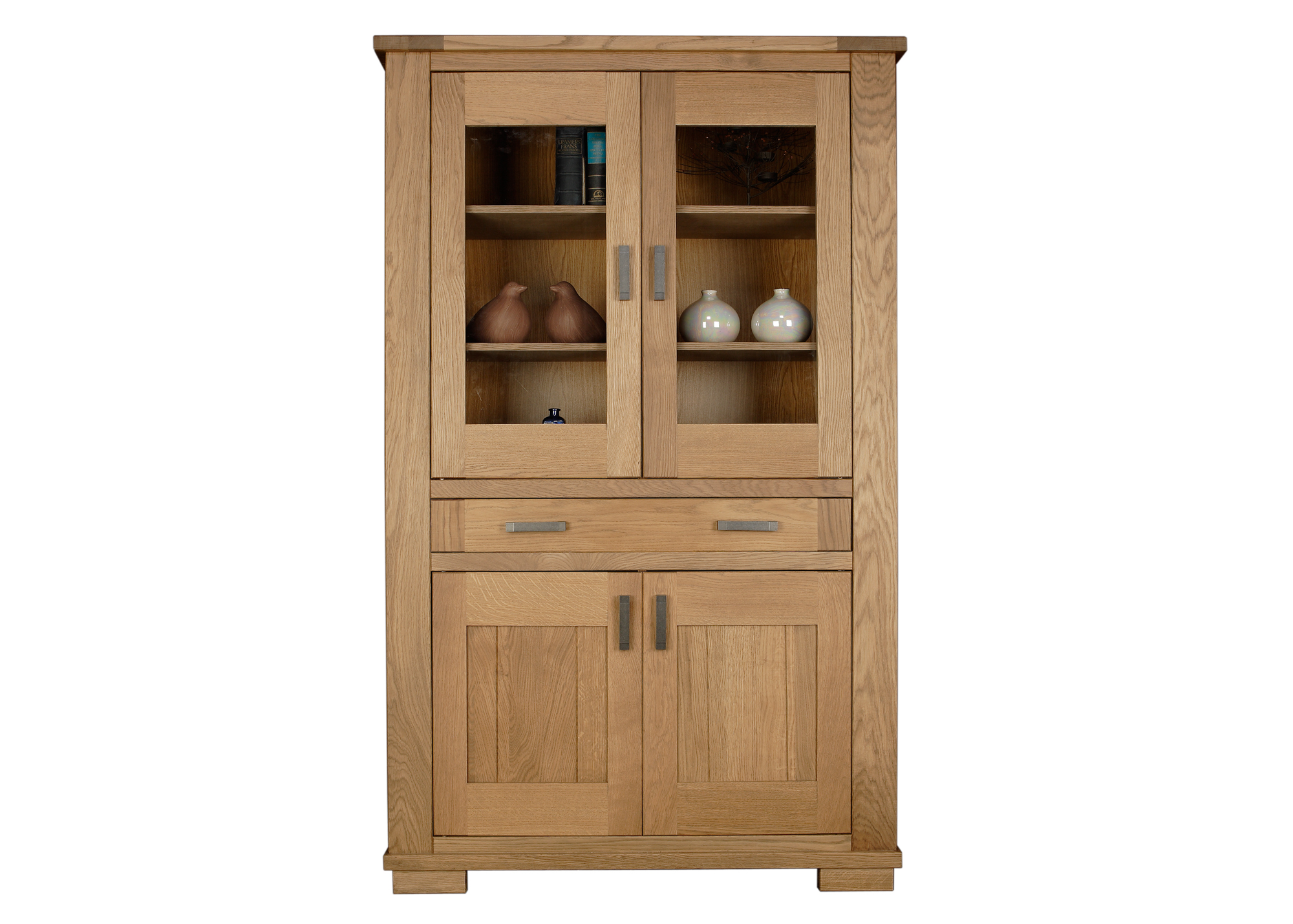 Robuust Europees eiken woonprogramma Kentucky van Nederlandse bodem, waarmee u uw woonruimte optimaal en sfeervol in kunt richten. De vele mogelijkheden van dit meubel programma zijn bijna onbeperkt. Er zijn diverse maten van het dressoir mogelijk. Buiten het feit dat dit programma standaard al vele uitvoeringen heeft, kunnen er ook kleine veranderingen doorgevoerd worden in overleg met fabrikant. De glasdeuren kunnen ten alle tijden door houten deuren worden vervangen. Leverbaar in maar liefst 37 kleuren!