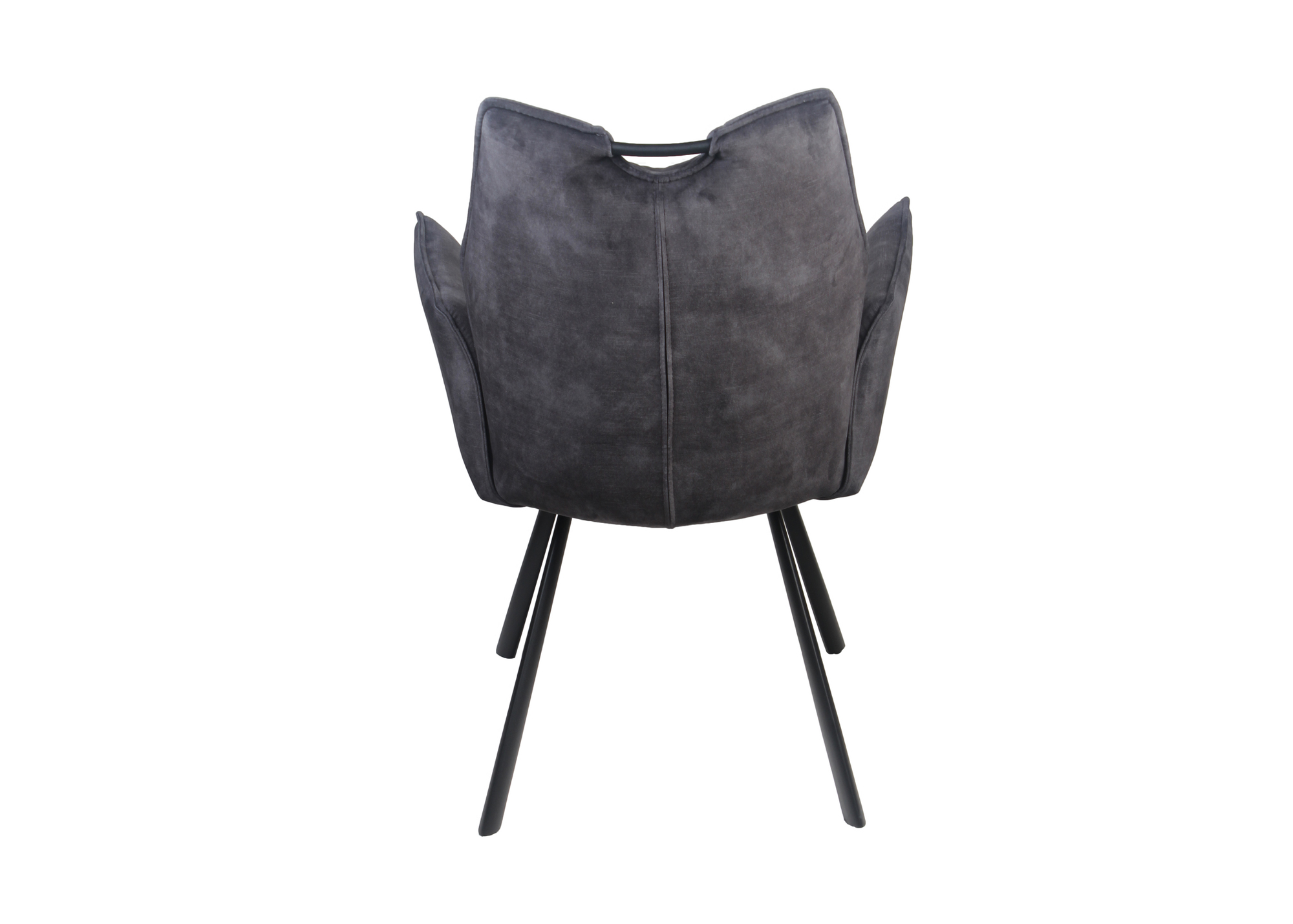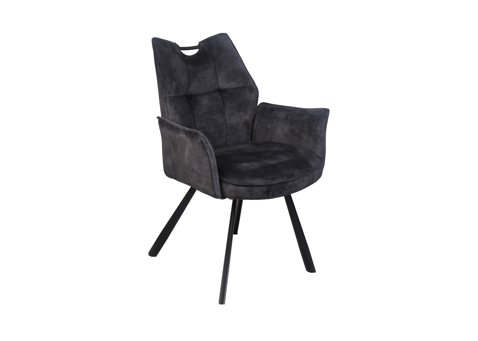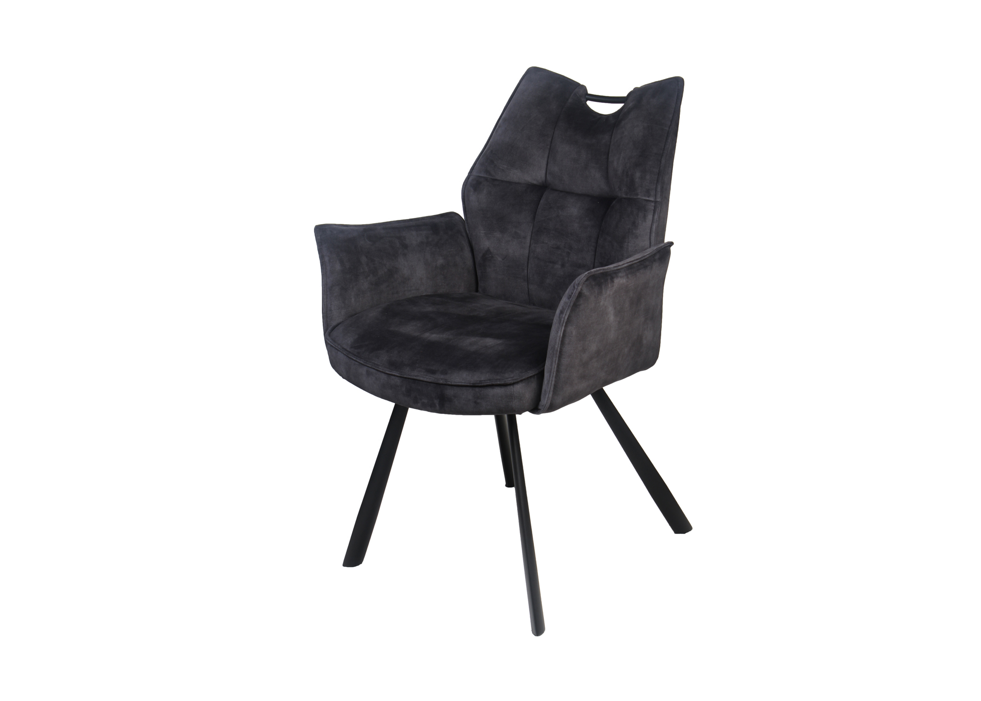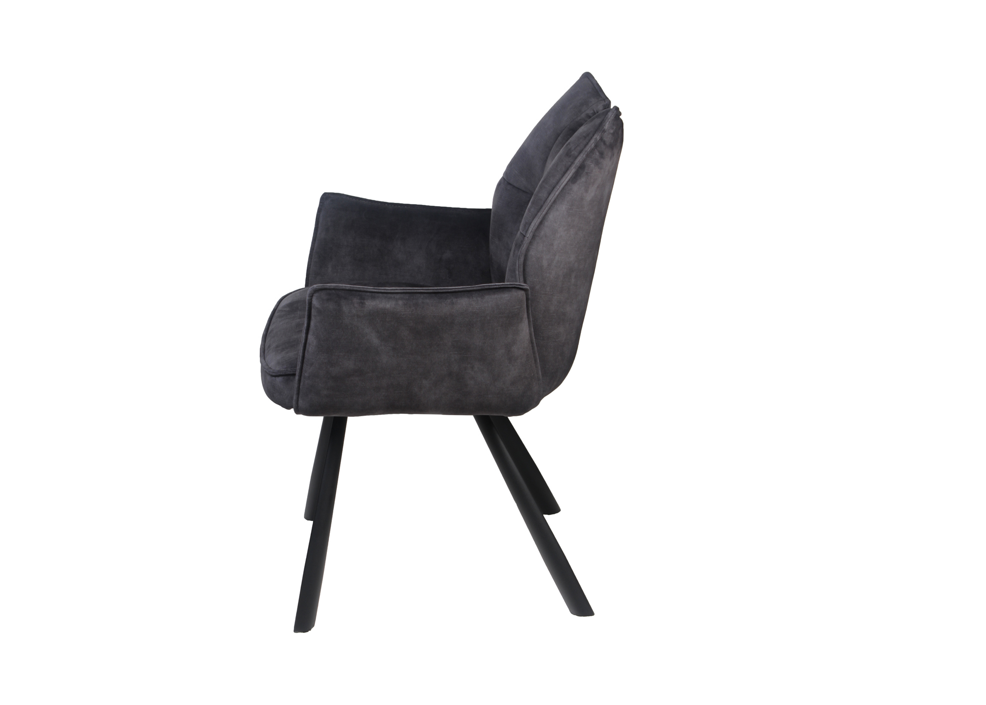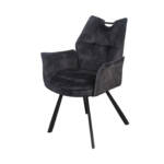 De armstoel Mabel is de perfecte combinatie van comfort en stijl. Met een stevig zwart metalen frame en een moderne vormgeving past deze stoel moeiteloos in verschillende interieurs, van industrieel tot eigentijds. De toevoeging van armleuningen zorgt voor extra zitcomfort, ideaal voor lange diners of gezellige avonden aan tafel.