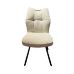 Maak kennis met eetstoel Mabel – een stijlvolle en comfortabele eetkamerstoel die jouw interieur een moderne en gezellige uitstraling geeft. Dankzij het zwarte metalen frame heeft de stoel een strakke, tijdloze look die makkelijk te combineren is met diverse woonstijlen.