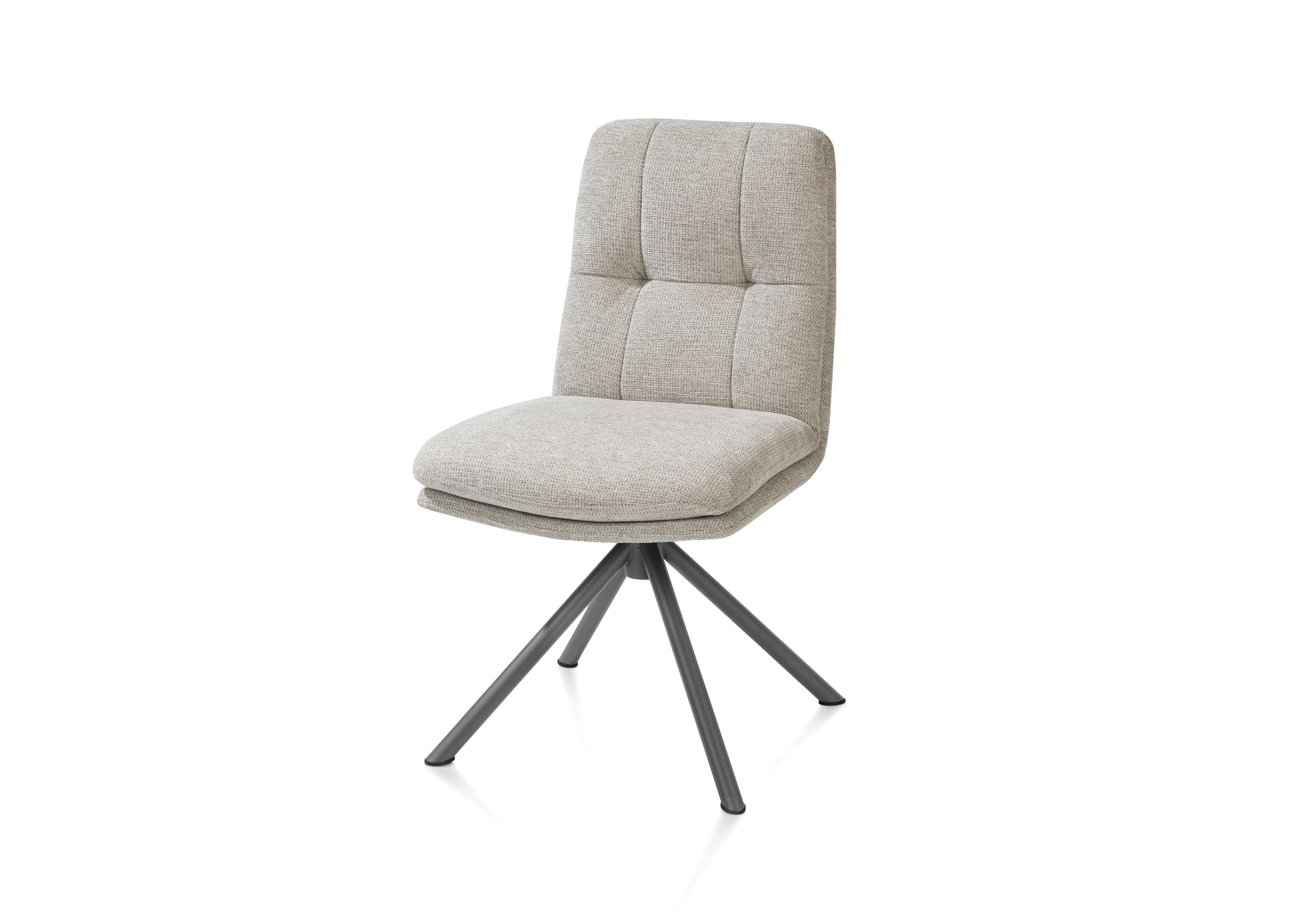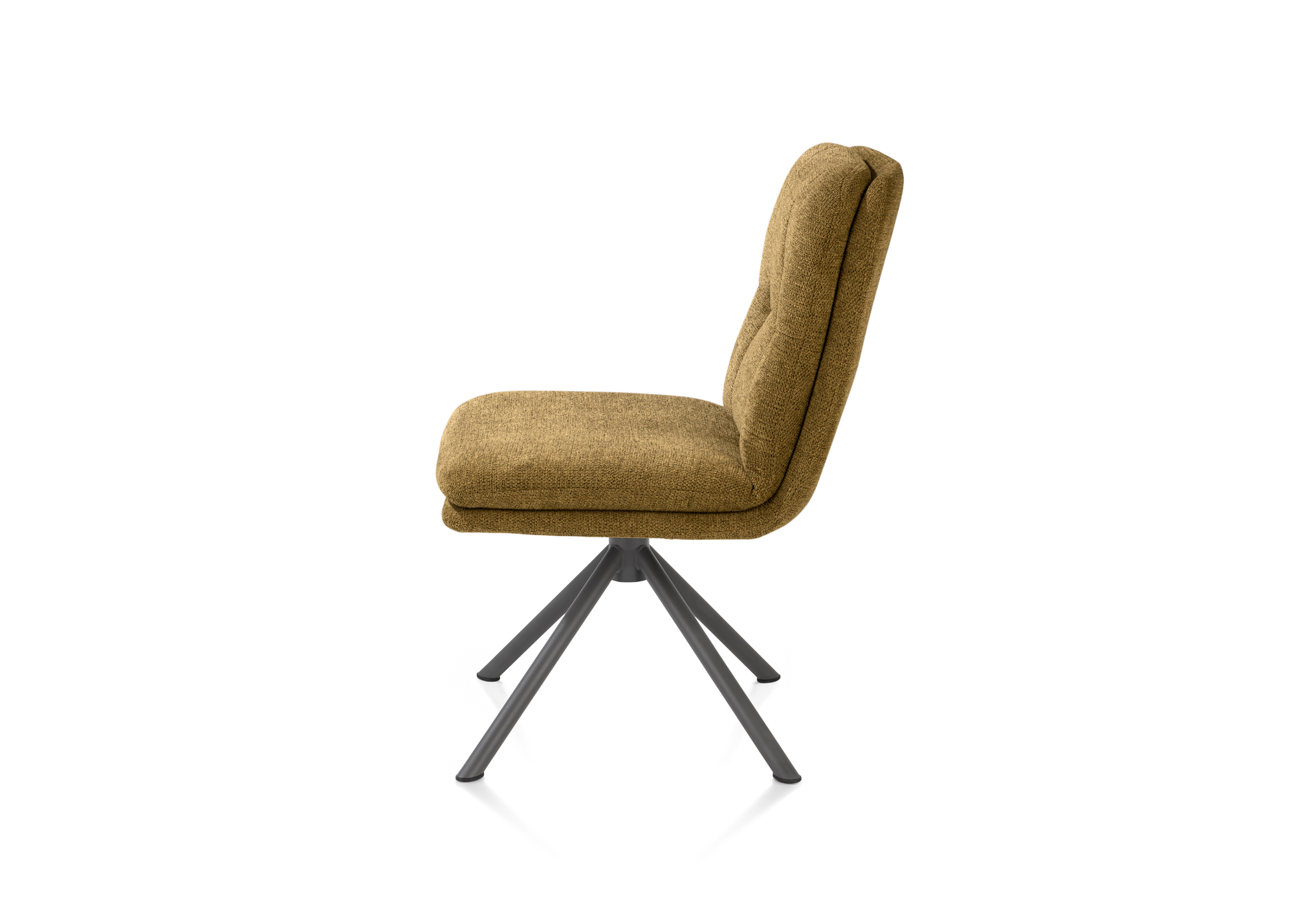 De Madelaine eetkamerstoel is een stijlvolle en comfortabele toevoeging aan iedere eethoek. Deze moderne stoel uit de Happy@Home collectie combineert een elegant design met praktisch gebruiksgemak, waardoor hij perfect is voor dagelijks tafelen én lange, gezellige avonden aan tafel. De zitting van de Madelaine is draaibaar en voorzien van een handige terugdraaifunctie. Hierdoor draait de stoel automatisch terug naar zijn oorspronkelijke positie wanneer je opstaat, wat zorgt voor een opgeruimde en rustige uitstraling rondom de eettafel. De zitting rust op een stevige metalen kruispoot in de kleur grafiet, die niet alleen stabiliteit biedt maar ook een moderne, industriële touch toevoegt. De bekleding is uitgevoerd in stof Vada: een fijne platweefstof met een subtiel haaks patroon. Dit geeft de stoel een warme en uitnodigende uitstraling, terwijl de stof tegelijkertijd sterk en duurzaam is. De Madelaine eetkamerstoel is verkrijgbaar in drie prachtige kleuren – mosgroen, beige en oker – zodat je eenvoudig de variant kiest die het beste past bij jouw interieur. Naast deze uitvoering is de Madelaine ook verkrijgbaar als armstoel, waardoor je verschillende varianten mooi met elkaar kunt combineren. Kom de Madelaine zelf ervaren bij Klinkenberg Wonen & Slapen en ontdek hoe comfort en stijl perfect samenkomen in deze eigentijdse eetkamerstoel.