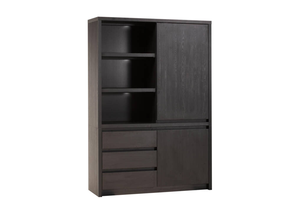 Ontdek de veelzijdige en stijlvolle wandkast Milanello in Lamulux Noir bij Klinkenberg Wonen & Slapen. Deze prachtige kast is de perfecte aanvulling op elk interieur, met 2 deuren, 3 laden en 3 open vakken voor opbergruimte en displayopties. De diepe Lamulux Noir afwerking geeft een luxe uitstraling. Optioneel kunt u kiezen voor LED-verlichting om de kast nog meer te laten stralen. Verrijk uw huis met functionaliteit en elegantie door deze Milanello wandkast te bestellen. Creëer een georganiseerde en sfeervolle leefruimte met dit unieke meubelstuk
