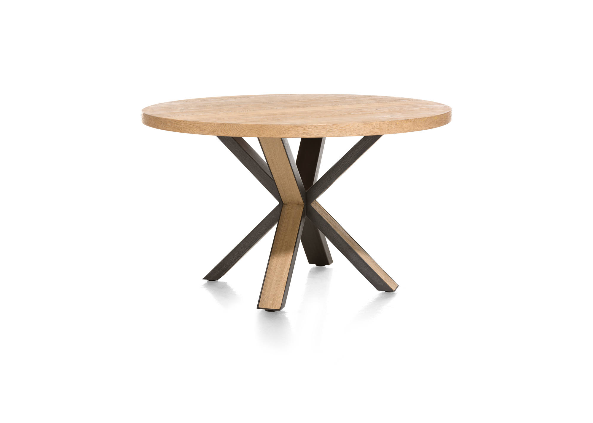 Deze ronde Happy@Home eettafel Ovada is passend/kleurend aan het Brooklyn meubelprogramma. Maar hij past ook bij heel veel andere meubellijnen of als vrijstaand model. De smoked afwerking van het hout zorgt voor een warme uitstraling. In combinatie met het metaal in een donkere finish is het gelukt een prachtig contrast en een eigen industriele stijl te creèren.