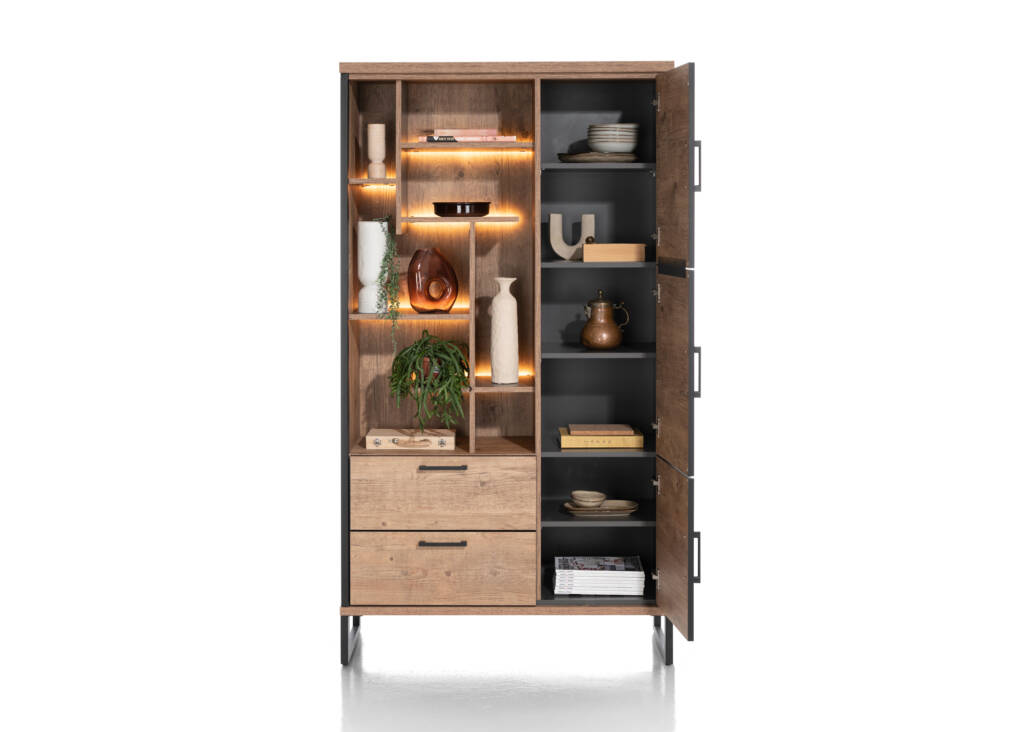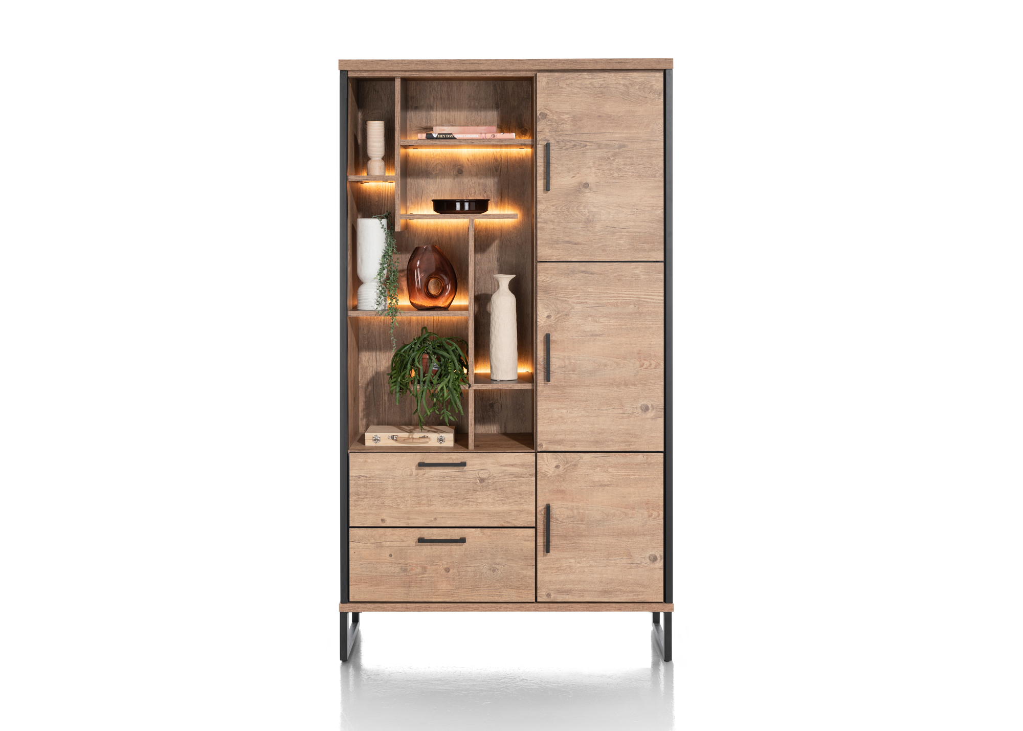 Maak kennis met de Pantin bergkast uit de Happy@Home collectie - een stijlvol en functioneel meubelstuk dat je interieur een eigentijdse uitstraling geeft. Deze bergkast is gemaakt van hoogwaardige materialen en is ontworpen om perfect te passen bij moderne interieurs. Met drie deuren, twee laden en zeven niches biedt de Pantin bergkast voldoende opbergruimte voor al je decoratieve accessoires, boeken, foto's en andere spullen. De LED-verlichting zorgt voor een gezellige en warme sfeer in je woonkamer of eetkamer. Het meubelstuk is gemaakt van Primo Laminato, een duurzaam materiaal dat bestand is tegen krassen en slijtage. De rustieke uitstraling van de kleur Barnwood maakt deze bergkast perfect voor landelijke of industriële interieurs. Kortom, de Pantin bergkast is de perfecte aanvulling op je interieur als je op zoek bent naar een combinatie van functionaliteit en stijl.