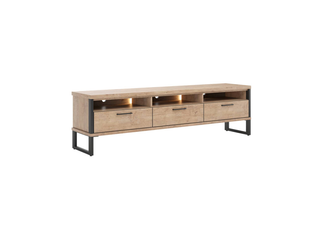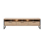 Het Lowboard Pantin 190 uit de Happy@Home collectie is een stijlvol en praktisch meubelstuk voor in de woonkamer. Het is gemaakt van duurzaam en onderhoudsvriendelijk Primo Laminato Barnwood materiaal en heeft een prachtige uitstraling. Met de LED-verlichting valt het lowboard nog meer op en krijgt het een moderne look. Dit lowboard heeft een lengte van 190 cm en biedt veel opbergruimte voor verschillende spullen. Het stoere ontwerp met metalen accenten en zwarte poten geeft het meubelstuk een robuuste uitstraling. Door de ruime opbergruimte is het lowboard Pantin uitermate geschikt als tv-meubel. Ontdek het Lowboard Pantin 190 uit de Happy@Home collectie en voeg stijl en functionaliteit toe aan uw woonkamer. TIJDELIJKE ACTIEPRIJZEN T/M 06-05-2026!