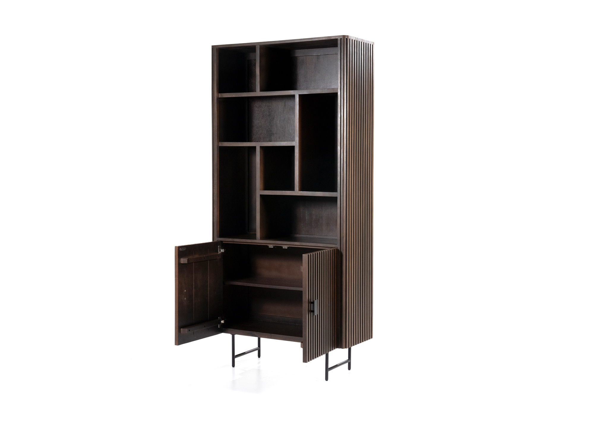 Ontdek de veelzijdige Remi boekenkast met 2 deuren en 7 open vakken, verkrijgbaar in zowel bruin als zwart Mangohout, harmonieus gecombineerd met verfijnd zwart gelakt metaal. Met afmetingen van 96bx37dx200h biedt deze boekenkast niet alleen praktische opbergruimte, maar voegt ook stijl toe aan uw interieur. Bij Klinkenberg Wonen & Slapen vindt u deze prachtige meubeloptie die uw ruimte verrijkt. Organiseer en presenteer uw spullen met de Remi boekenkast en creëer een eigentijdse sfeer. Ontdek ons assortiment vandaag nog!