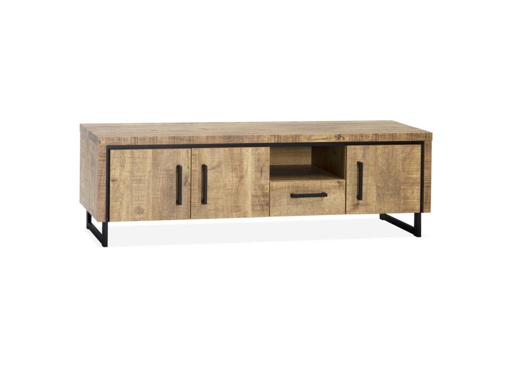 Verken nu de ruime Rimini TV-kast in groot formaat bij Klinkenberg Wonen en Slapen, een ideale mix van bruikbaarheid en tijdloze pracht. Met genereuze dimensies van 50 x 170 x 45 cm dient deze kast niet alleen als een elegante hub voor je televisie, maar biedt ook voldoende opbergruimte voor al je multimedia-apparatuur en toebehoren. Gefabriceerd met duurzaam Lamulux materiaal, met een aantrekkelijke mango hout uitstraling, voegt de Rimini TV-kast een warm en karaktervol element toe aan elke leefruimte. Uitgerust met drie deuren, een lade en een open compartiment, biedt deze kast diverse opbergmogelijkheden, waardoor het zowel praktisch als chic is. Ontdek vandaag nog de grandioze Rimini TV-kast en verrijk je huis met tijdloze allure