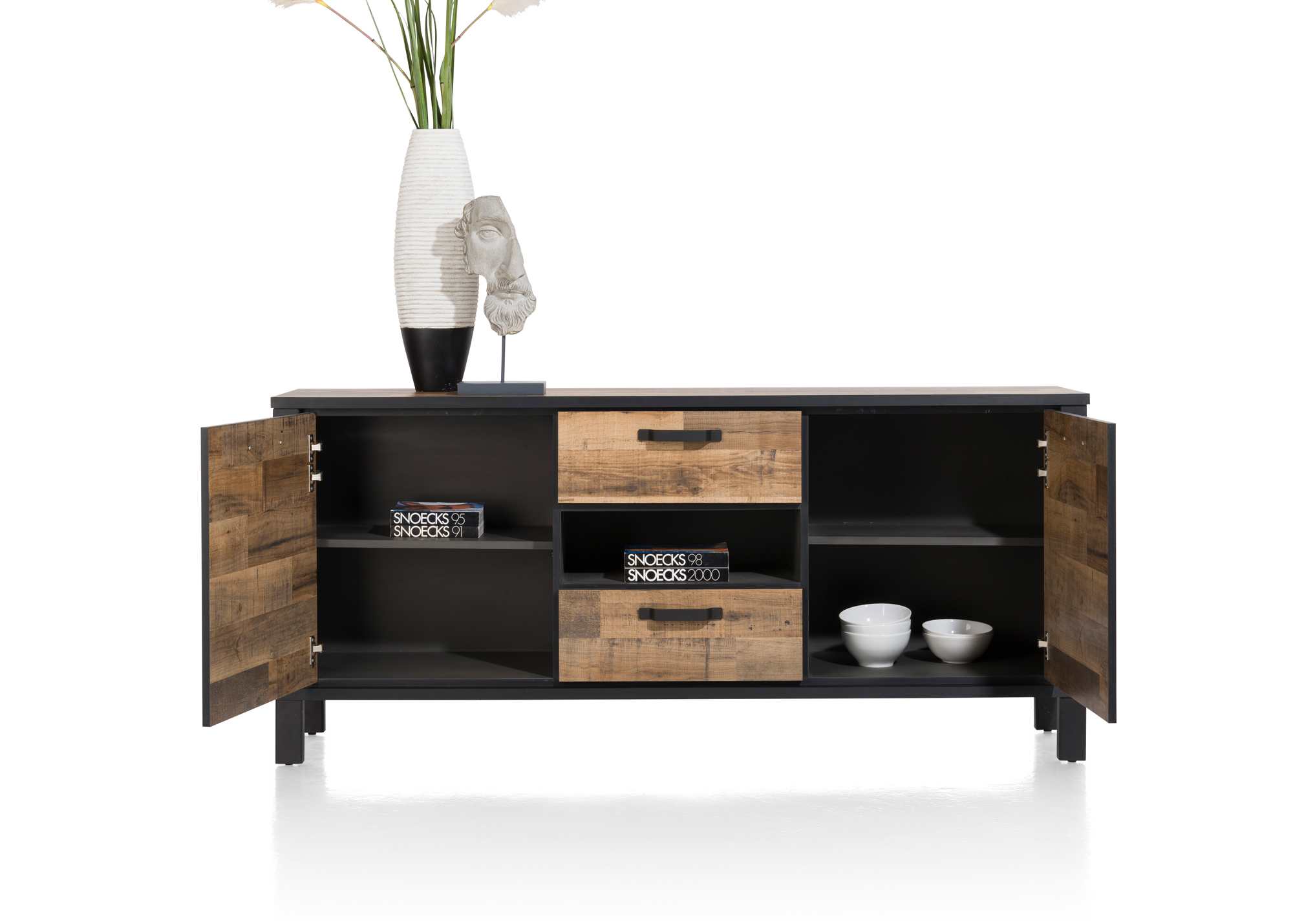 Dressoir 180 cm. - 2-deuren + 2-laden + 1-niche.