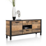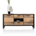 Dressoir, roomdivider, boekenkast, dit Sardinie meubeluit de Happy@Home collectie is multi-functioneel. Het is gemaakt van het onderhoudsvrije Primo Laminato in de kleur Driftwood, gecombineerd met zwart metaal. Deze combinatie geeft het dressoir een stoer uiterlijk. Het strakke design en de speelse vormgeving, maken van dit meubelstuk een fraaie blikvanger in het interieur.