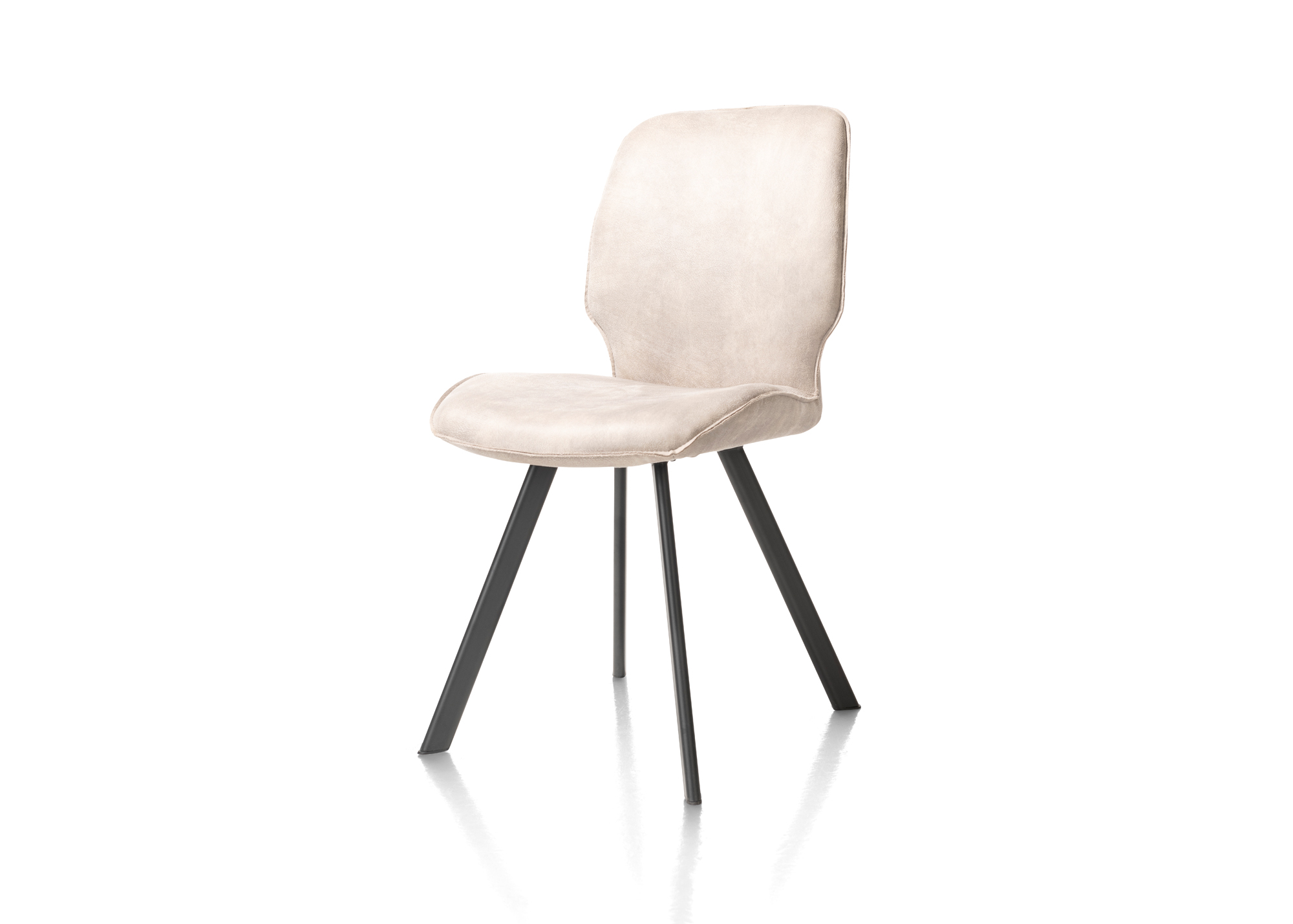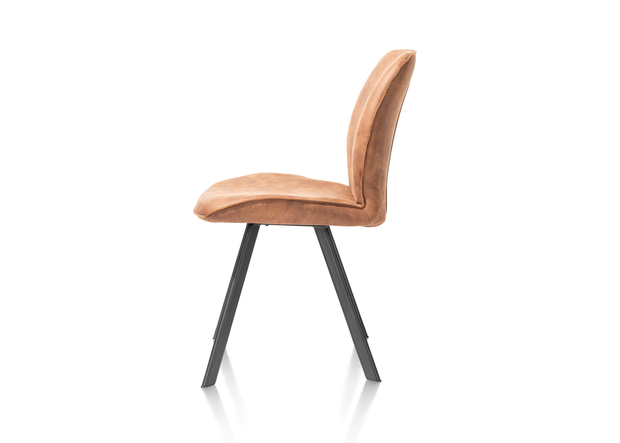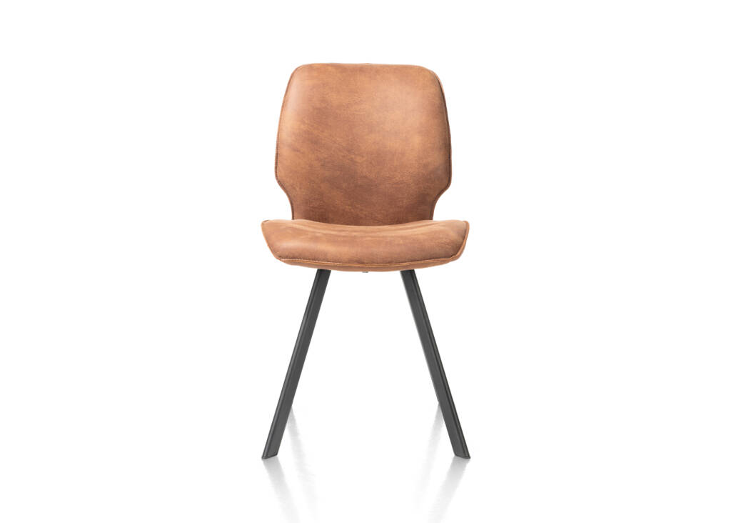 Deze eetstoel Semmi uit de collectie van Happy@Home heeft een heel mooi design. Er zit een versmalling in de rug, wat zorgt voor een moderne touch. Het onderstel van deze stoel heeft 4 zwart metalen, extra fijne poten. De stoel is bekleed met microleder Taurus en is in deze bekleding beschikbaar in 4 kleuren: cognac, kiezel, off-black en olijf. De stoel heeft een verrassend goed zitcomfort.