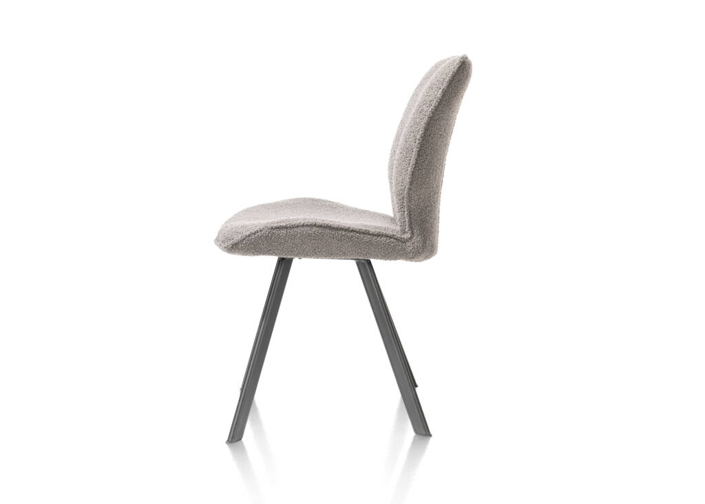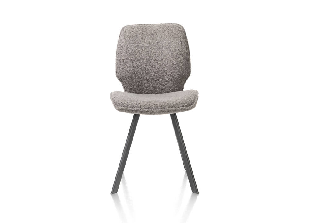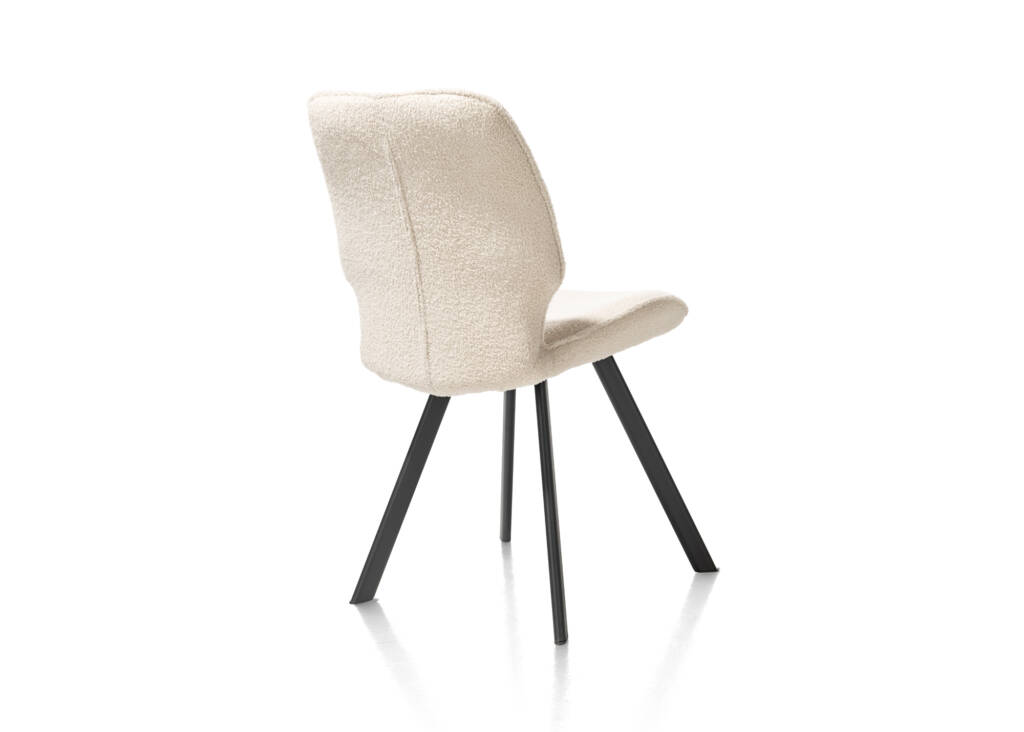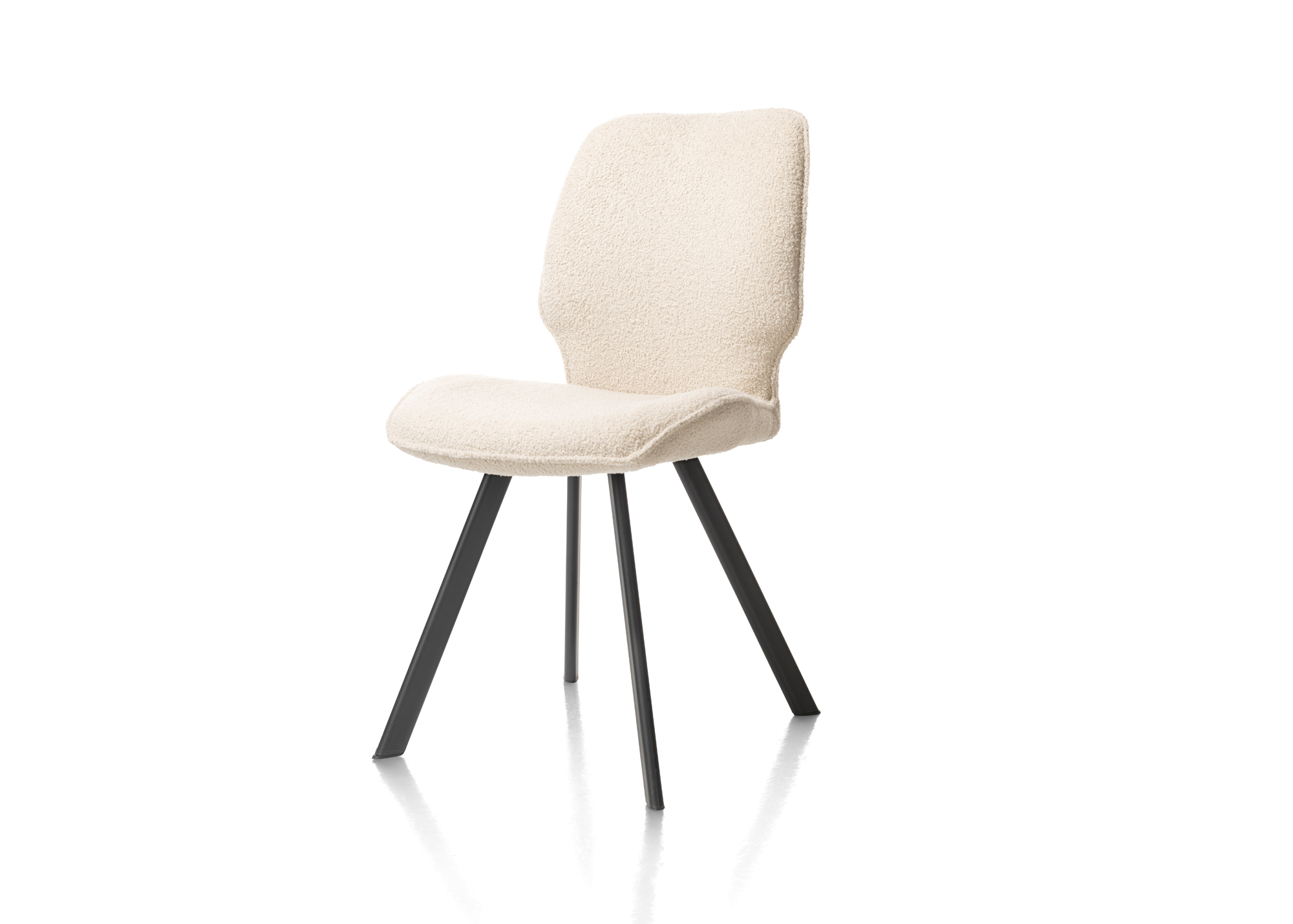 Deze eetkamerstoel Semmi uit de collectie van Happy@Home heeft een prachtig design met een versmalling in de rug. Het onderstel van de stoel Semmi heeft 4 zwart metalen, extra fijne, poten. De stoel is uitgevoerd in de fijne boucléstof (lusjesstof) Avicci en is beschikbaar in 3 verschillende kleuren: crème, antraciet en taupe.