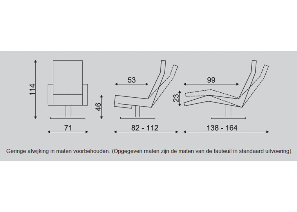 Ervaar het summum van ontspanning met de Twice Pro TW 170 relaxfauteuil, ontworpen om te voorzien in ongeëvenaard comfort en functionaliteit. Deze fauteuil wordt standaard geleverd met elektrische bediening dankzij drie motoren: één voor de rugleuning, één voor de voetklep en één voor de unieke "hart-balans" stand, waarbij voeten en hart zich in een horizontale lijn bevinden, wat als zeer rustgevend wordt ervaren. Deze veelzijdige fauteuil biedt een scala aan functies, waaronder een kantelbare zitting zonder gebruik van de voetensteun, een opsta-functie en een verstelbaar bovenste deel van de rugleuning voor optimale ondersteuning van het hoofd in elke positie. De bedieningstoetsen zijn handig geïntegreerd in de zitting en de elektromotoren zijn voorzien van een oplaadbare accu, waardoor er geen snoer over de vloer loopt. Kies uit maar liefst 6 verschillende maten, variërend van XS tot XXL, en pas de fauteuil aan naar uw persoonlijke voorkeur. Optionele kenmerken zijn onder andere een lage rug, hoge rug, extra hoge rug, elektrische topswing, manuele of elektrische lendensteun, bluetooth afstandsbediening en zit-, rug- en voetklepverwarming. Ontdek de Twice Pro TW 170 relaxfauteuil bij Klinkenberg Wonen & Slapen en geniet van het ultieme comfort en de functionaliteit die deze fauteuil biedt.