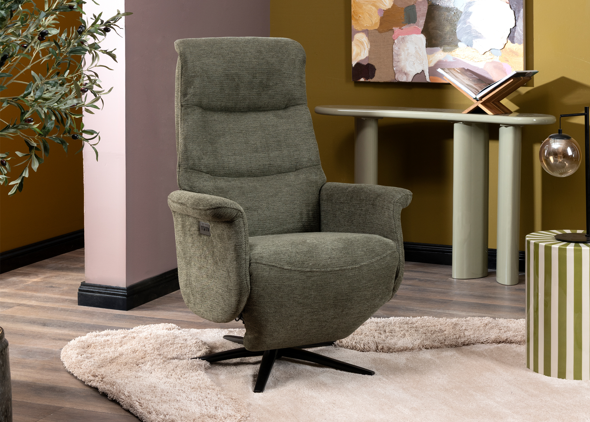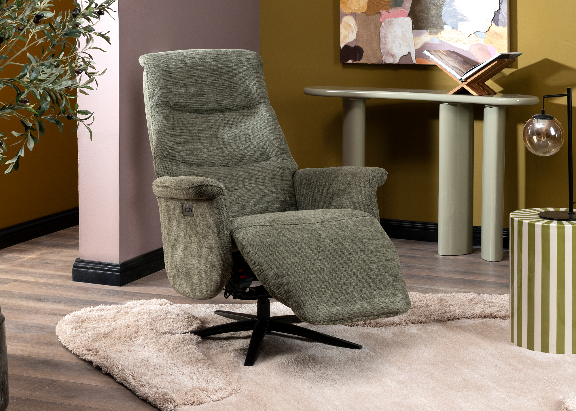 Ontspan in stijl met de Twistello relaxfauteuil: een moderne fauteuil die comfort en gebruiksgemak perfect combineert. Deze fauteuil uit de collectie van Happy@Home is ontworpen voor iedereen die houdt van ontspannen zitten, zonder concessies te doen aan uitstraling. Dankzij het eigentijdse design en de verfijnde afwerking is de Twistello een echte aanwinst voor elk interieur. De Twistello is draaibaar en voorzien van een elektrische relaxfunctie, waarmee je eenvoudig jouw ideale zit- of ligpositie instelt. De manueel verstelbare hoofdsteun zorgt voor extra ondersteuning van nek en schouders, waardoor je ook tijdens langere relaxmomenten heerlijk comfortabel zit. Voor nog meer vrijheid is de fauteuil optioneel uit te breiden met een accu, zodat hij volledig snoerloos geplaatst kan worden. Een groot pluspunt: de Twistello is snel leverbaar in de stijlvolle stof Vada mosgroen, beige. Deze warme, eigentijdse kleur geeft de fauteuil een luxe uitstraling en past perfect in zowel moderne als natuurlijke woonstijlen. Wil je de Twistello zelf ervaren? Kom dan langs bij Klinkenberg Wonen & Slapen en ontdek hoe comfort, functionaliteit en design samenkomen in deze heerlijke relaxfauteuil. Perfect voor jouw moment van rust, elke dag opnieuw.